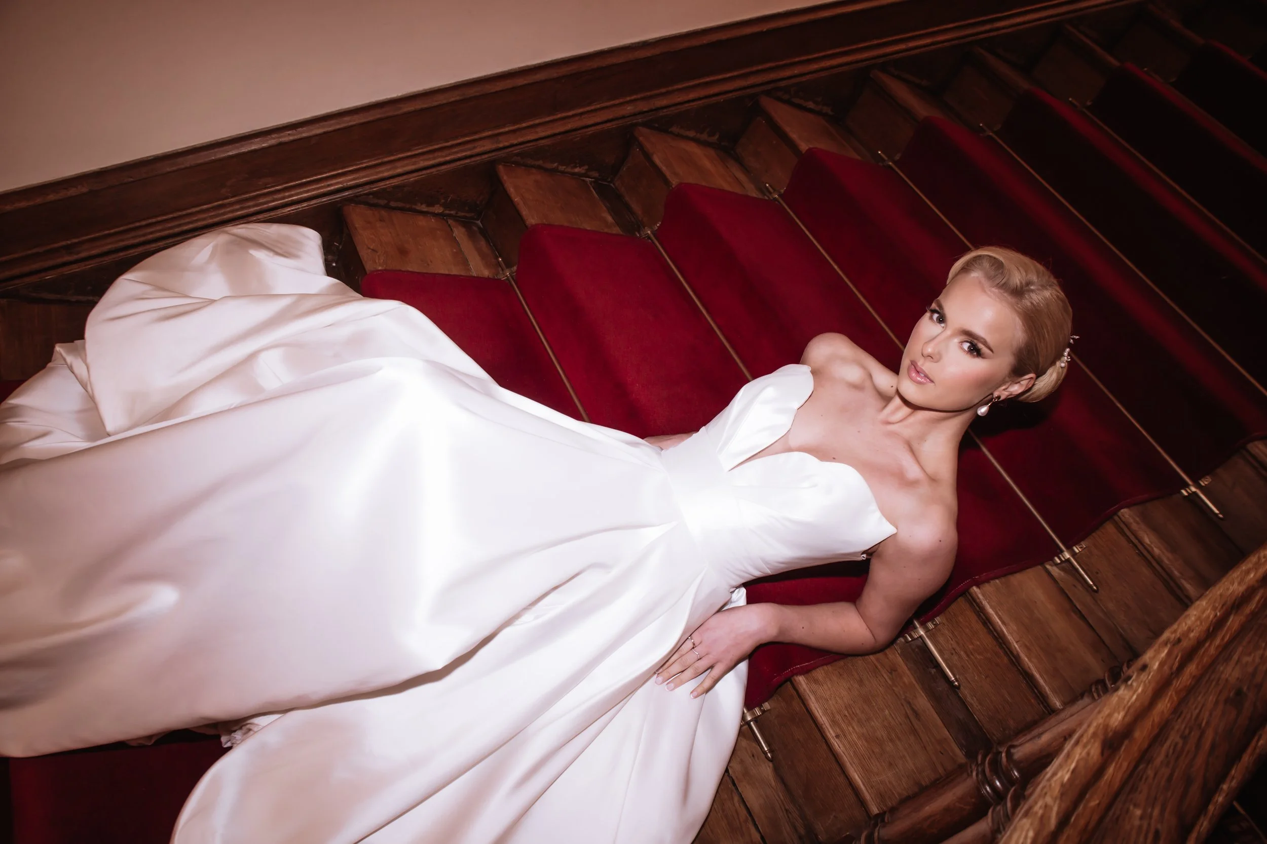 Her designs evoke a sense of timeless allure, reminiscent of old Hollywood icons, yet reimagined for the modern bride. One gown in particular instantly transported me to the unforgettable image of Marilyn Monroe’s iconic fan lift — its daring slit at the side balancing sophistication with a whisper of seduction. Photographing it felt like walking the line between allure and refinement, a celebration of femininity that was at once powerful and graceful.