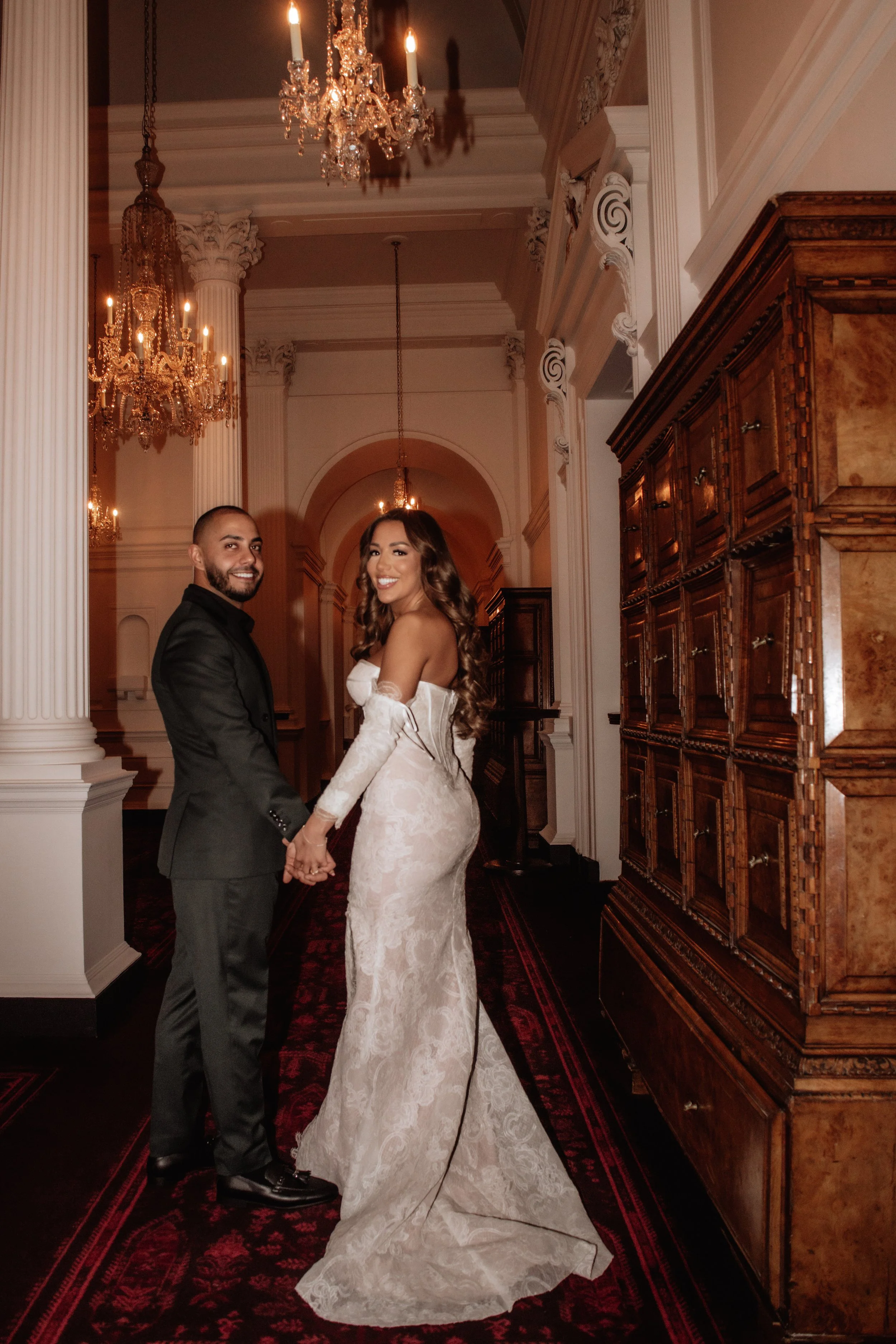 Their engagement celebration took place at The Ned London, one of the capital’s most exclusive members’ clubs — a venue that defines modern luxury with an old-world soul. The Ned, once a grand 1920s bank designed by Sir Edwin “Ned” Lutyens, now stands as an architectural love letter to Art Deco elegance. Beneath its soaring marble columns and ambient golden light, the space feels like stepping back into the glamour of a bygone era. It’s the kind of place where every celebration feels like a scene from a film — where laughter echoes beneath chandeliers and champagne flutes never seem to empty. Over the years, it’s hosted countless glittering soirées and intimate weddings, each one dripping in that same London allure.
